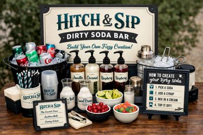 A drop-off dirty soda bar is a self-serve, non-alcoholic beverage setup that’s delivered, styled, and picked up—with no bartender or attendant on site.